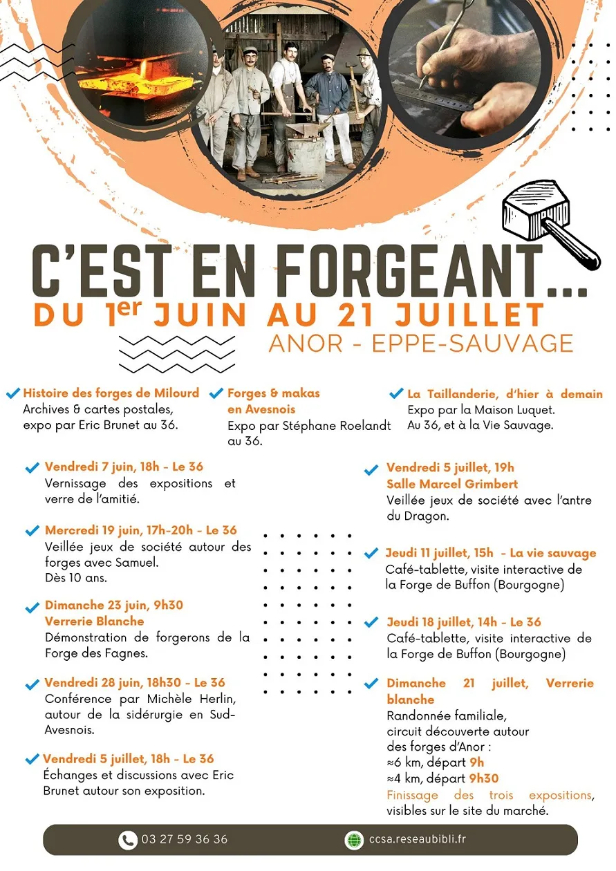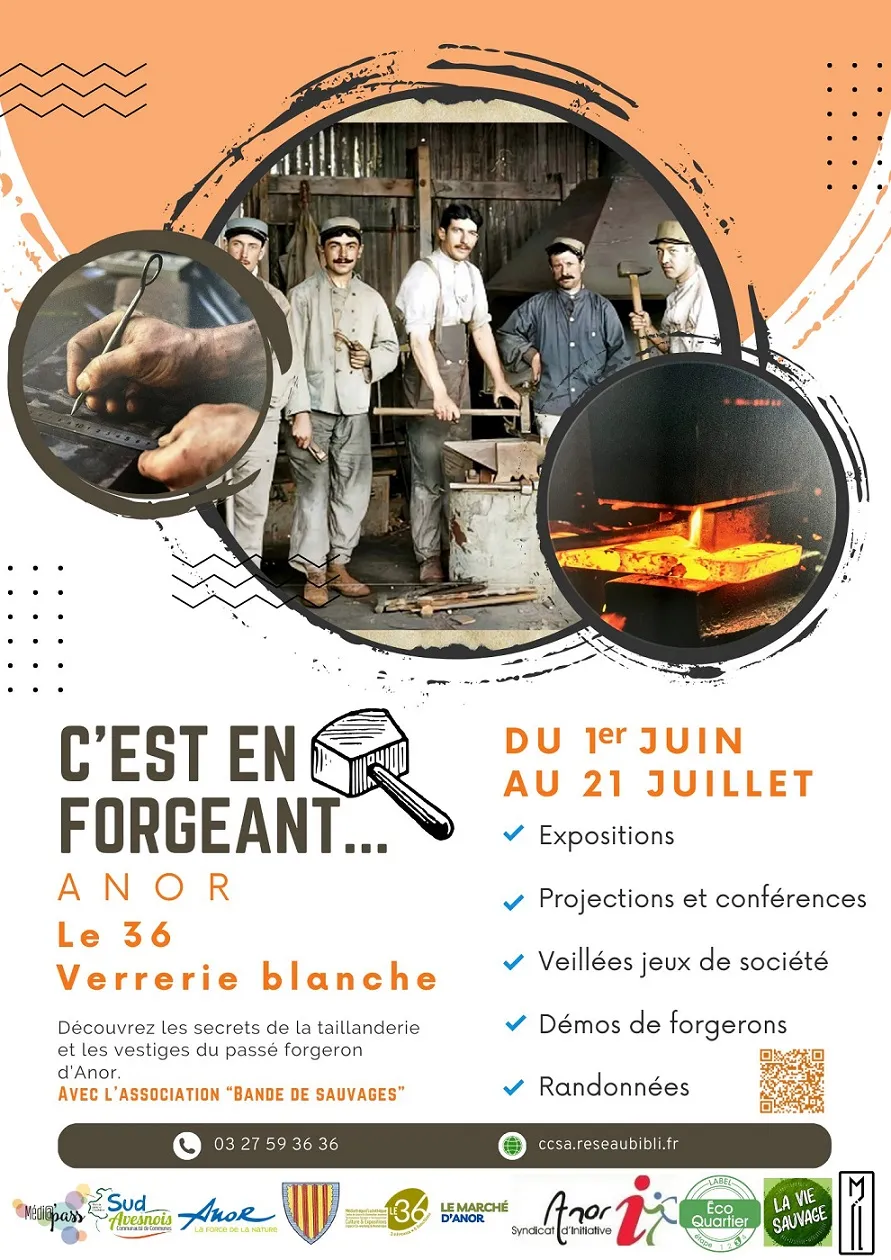 Vous connaissez l’expression, « c'est en forgeant, qu’on devient forgeron », c’est aussi le titre d’un évènement inédit organisé par le Réseau « Média'pass » et ses partenaires, depuis ce week-end et jusqu’au 21 juillet, au 36 et à l’écoquartier de la verrerie blanche à Anor, ainsi qu’à la vie sauvage, le café-médiathèque d’Eppe-Sauvage !
