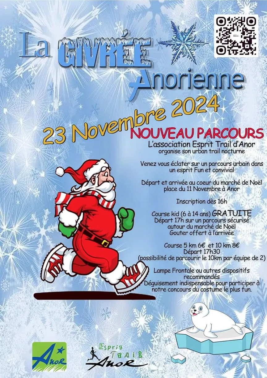 -17h : « La givrée anorienne » organisée par l'Association Esprit Trail d'Anor (inscription dès 16h) > course des enfants à 17h et départ des 5 et 10km à 17h30