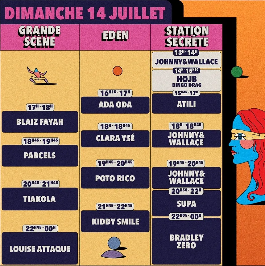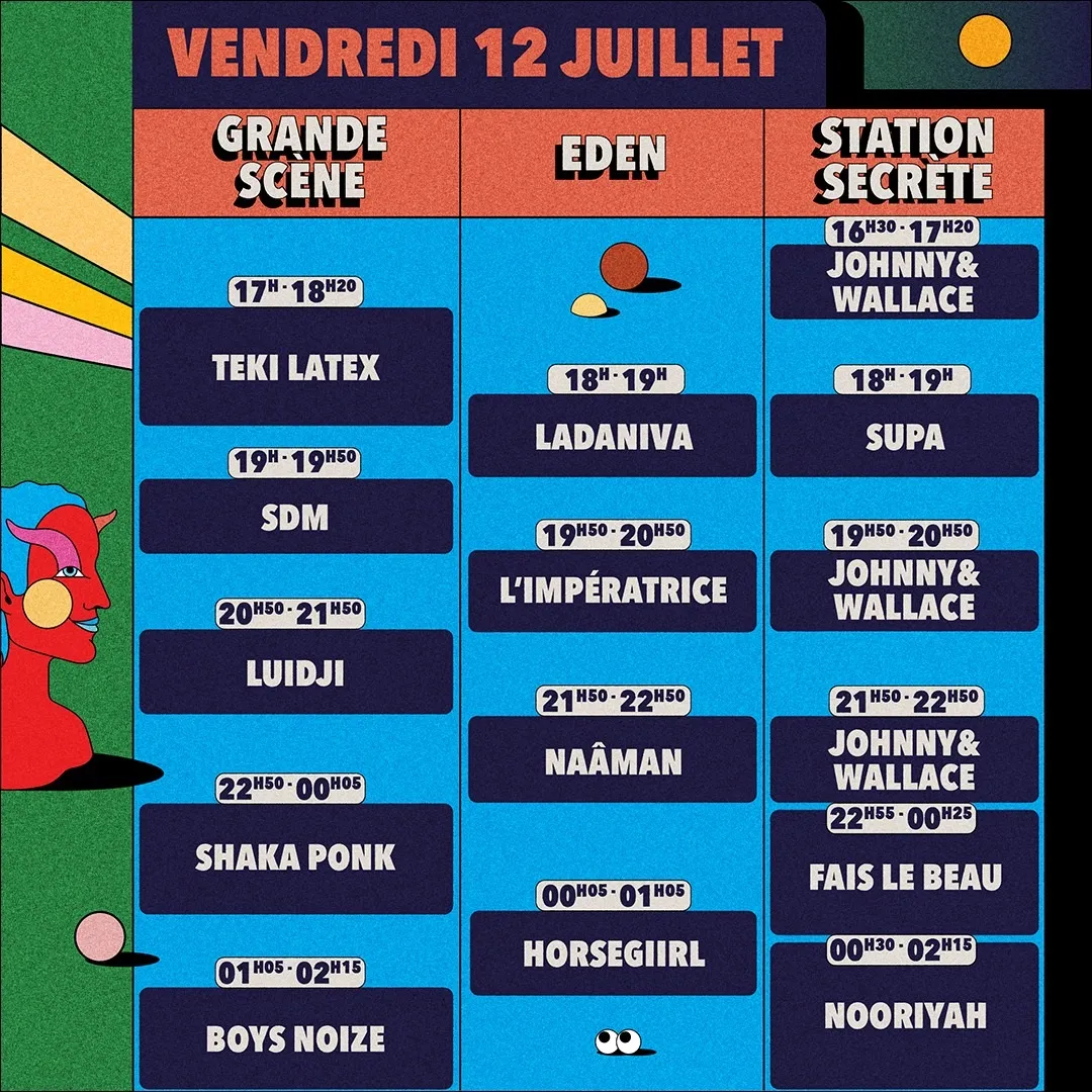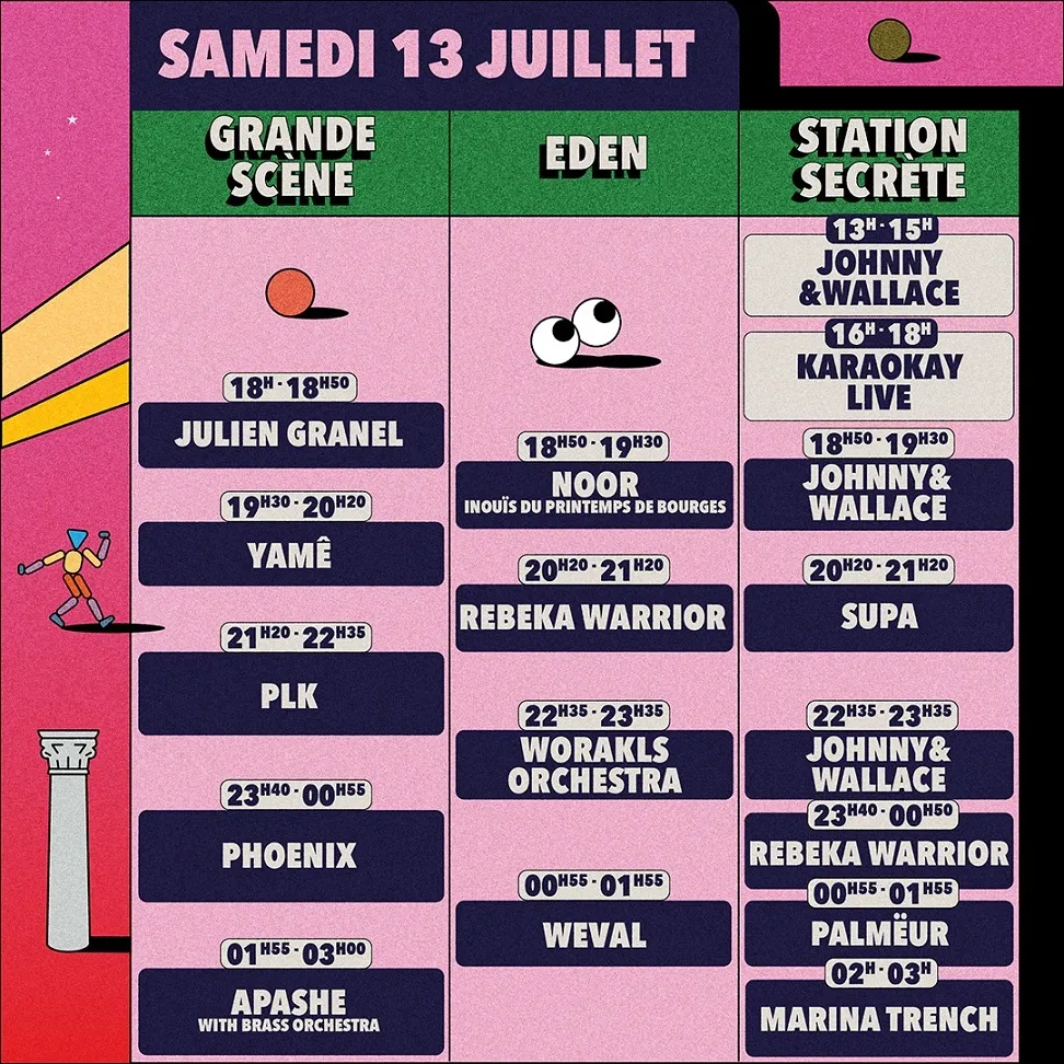 En plus de PLK ou de Louise Attaque, sont annoncés ce week-end : Tiakola, SDM, Phoenix, L'Impératrice, mais aussi Clara Ysé, Apache, Shaka Ponk, Parcels, Luidji, Kiddy Smile et Boys Noize…