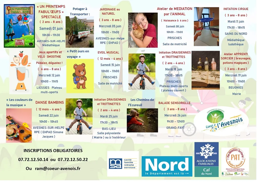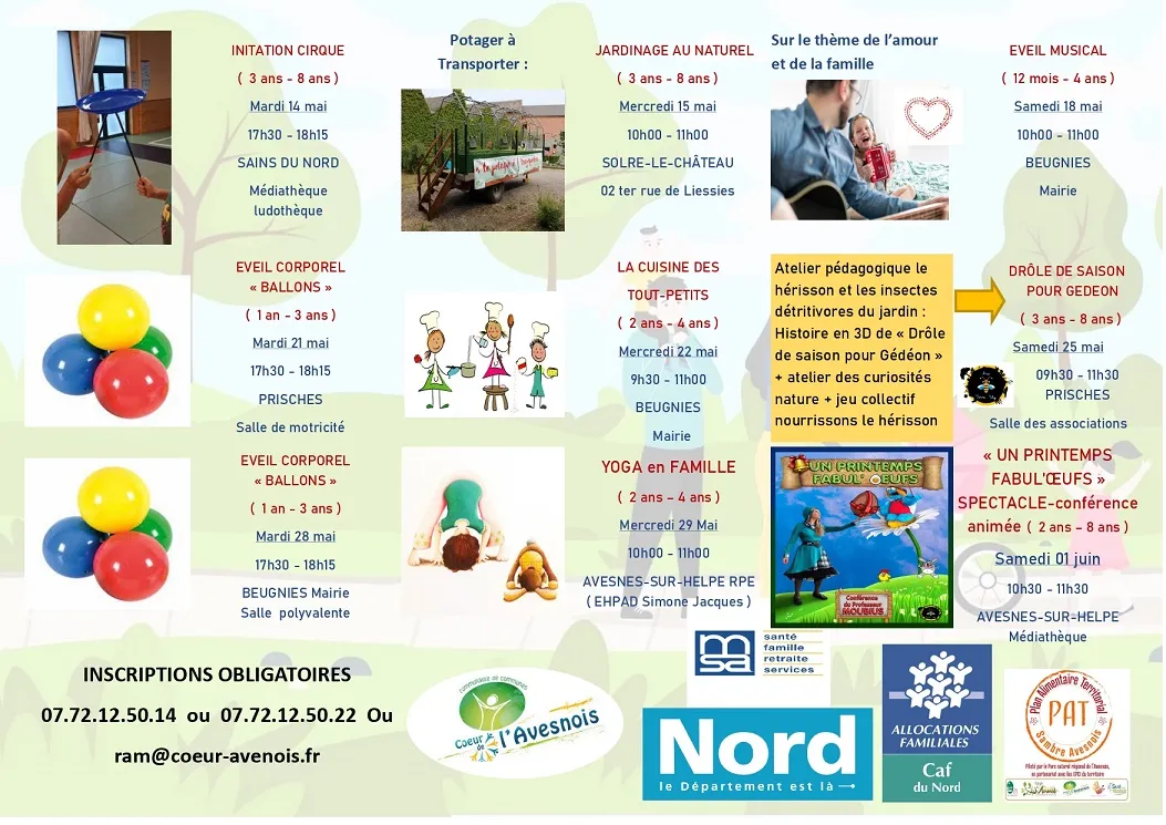 >>> C’est gratuit, sur inscriptions au 07 72 12 50 14 ou 07 72 12 50 22 ou par mail ram@coeur-avesnois.fr