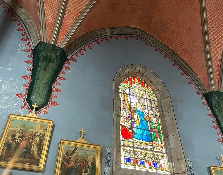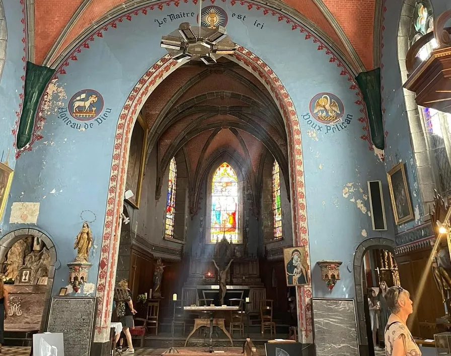 Construite avec des briques et de la pierre bleue au 16ème siècle, cet édifice religieux est inscrit aux titres des monuments historiques depuis 1947. Cette église est considérée comme étant un véritable petit bijou de l’art gothique. On peut y découvrir à l’intérieur un magnifique chemin de croix, des peintures murales, deux triptyques religieux, des œuvres exceptionnelles (comme « La Mise au Tombeau »), ainsi que des pierres tombales, une grotte de la Vierge, un orgue et un tabernacle des 17 et 18ème siècles.