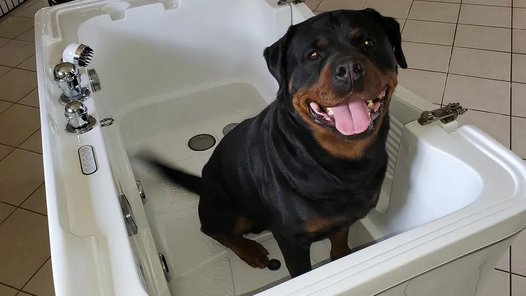 Mélanie Laurent propose aussi des prestations de balnéothérapie (un bain chaud à bulle en mode spa) pour soulager les chiens qui souffrent d'arthroses, ceux qui rencontrent des problèmes musculaires, qui sont en convalescence après une blessure, mais aussi pour les chiens stressés ou tout simplement pour offrir à votre animal de compagnie un moment de détente bien mérité !