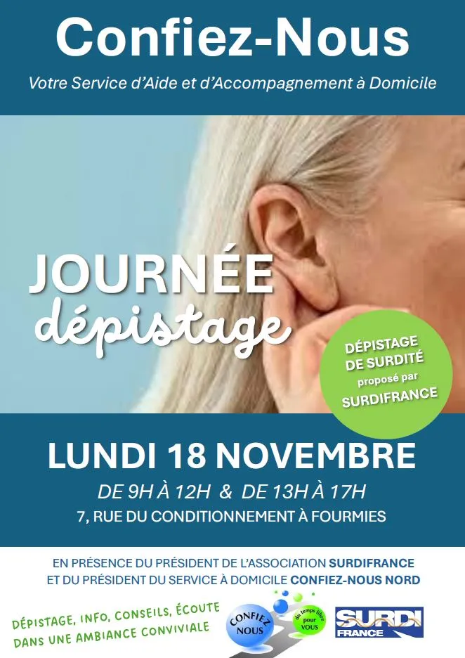 La société d’aides à domicile « confiez nous », implantée à Fourmies depuis 2018 et qui compte 45 salariés, organise, en partenariat avec l'association « SURDIFRANCE », une journée de dépistage auditif.