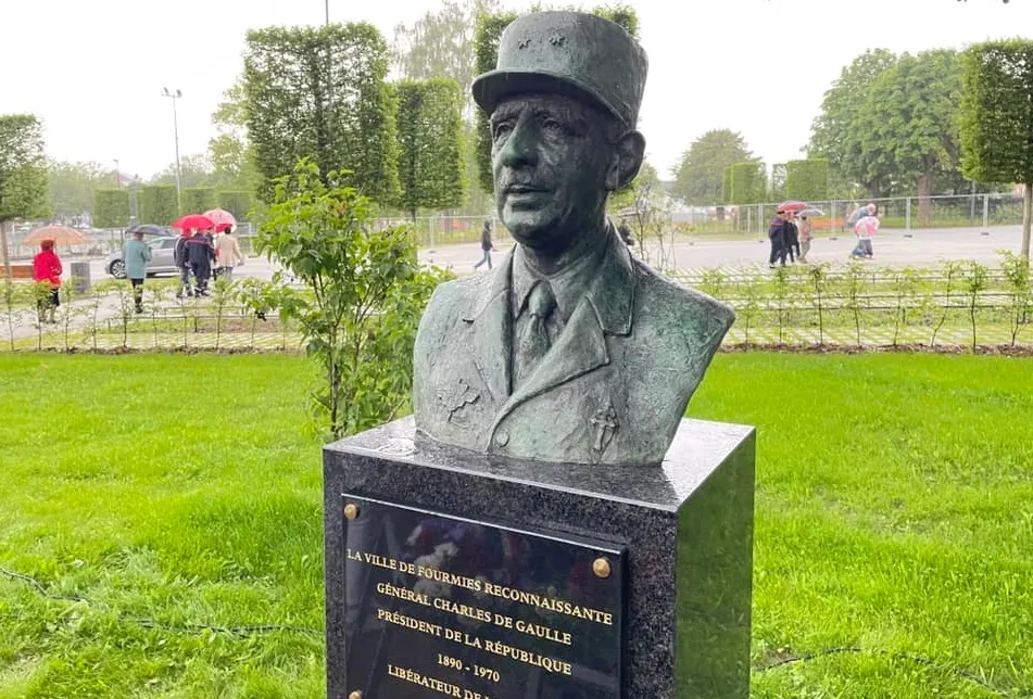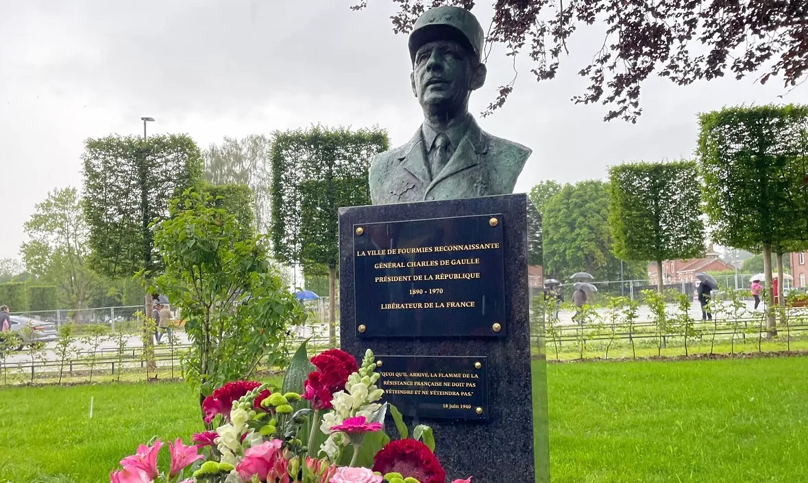 Figure emblématique de l'histoire de France et symbole de résistance, le « grand Charles » avait déjà une avenue qui portait son nom à Fourmies. C’est donc dans le prolongement de cette avenue, juste à côté des monuments aux morts que ce buste de Sébastien Langloÿs a été posé sur un socle en marbre.