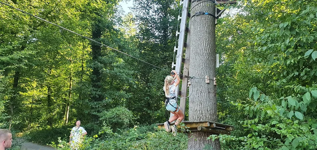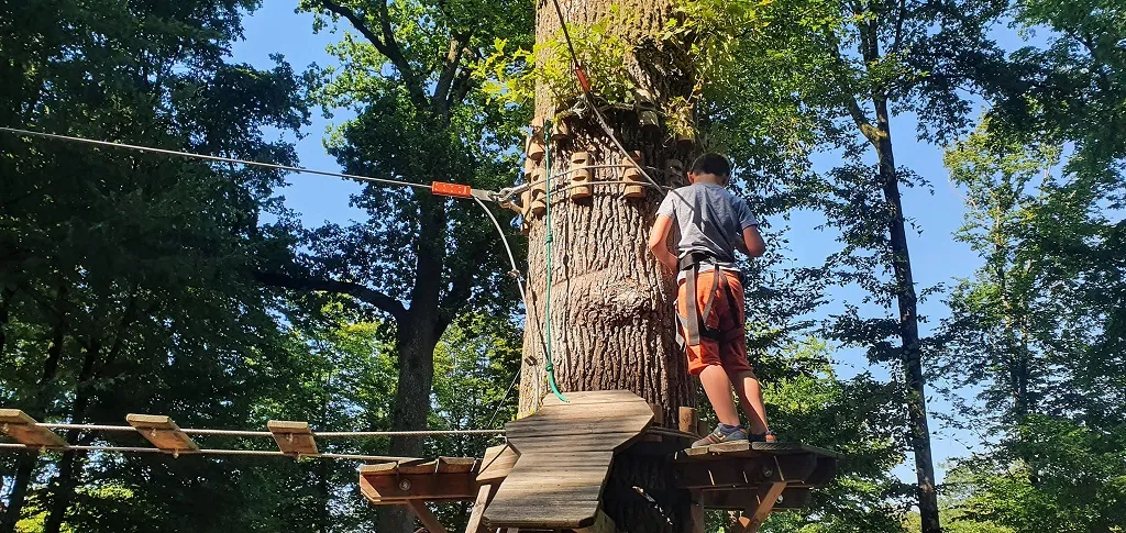 - une nouvelle tyrolienne de 26m qui passera au-dessus de l’étang et de la route forestière menant à l’hôtel ibis