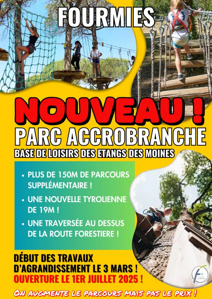 Si le parcours augmente, le tarif restera inchangé par rapport à l’an dernier, soit 4 € par personne (avec le prêt d’une paire de gants et d’un casque inclus) ! La mise en service de ce nouveau parcours d’accrobranche est annoncée pour le 1er juillet, lors de la réouverture de la base de loisirs fourmisienne.