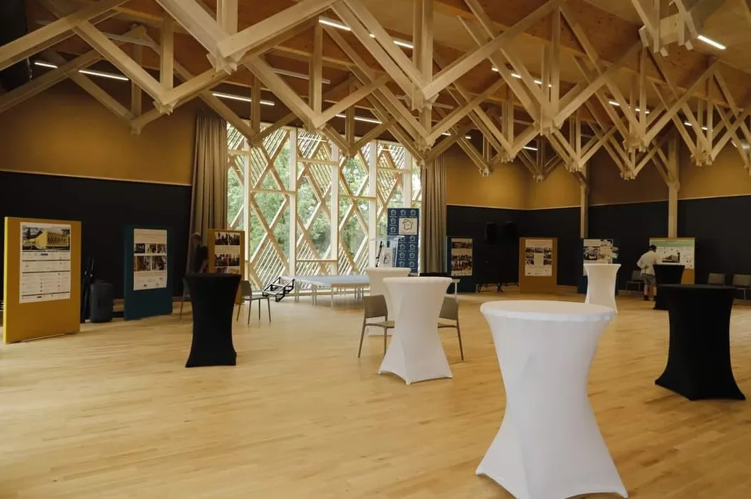 Grâce à ses matériaux biosourcés, cette salle a une consommation d’énergie 91 % inférieure à celle des bâtiments traditionnels, faisant d’elle un modèle d’écoresponsabilité ! Elle est notamment équipée d’une chaudière à pellets, utilisant les ressources renouvelables de l’Avesnois-Thiérache ! La toiture a même été végétalisée et isolée avec « des vêtements recyclés transformés en « isolant » par des nordistes en réinsertion professionnelle du « Relais »…