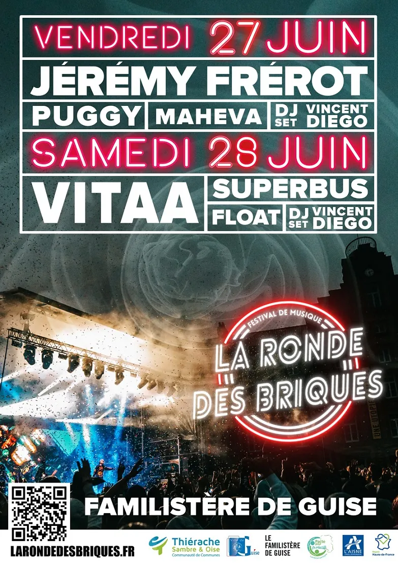 De nouveaux noms ont été ajoutés à la programmation du festival « La Ronde des Briques » qui aura lieu les 27 et 28 juin sur les parvis du Familistaire à Guise. Aux côtés des têtes d’affiche, on nous annonce pour le vendredi soir les prestations de la chanteuse Maheva et du groupe de rock belge Puggy, en 1ère partie de Jérémy Frérot. L’autrice-compositrice-interprète Maheva s’appuie sur ses deux plus grandes forces, sa guitare et sa voix singulière pour mettre en lumière à travers ses chansons les différentes facettes de la vie !