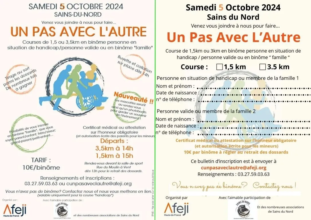 >>> Inscriptions possibles sur place le jour J ou au 03 27 59 03 63 ou par courriel : cunpasaveclautre@afeji.org