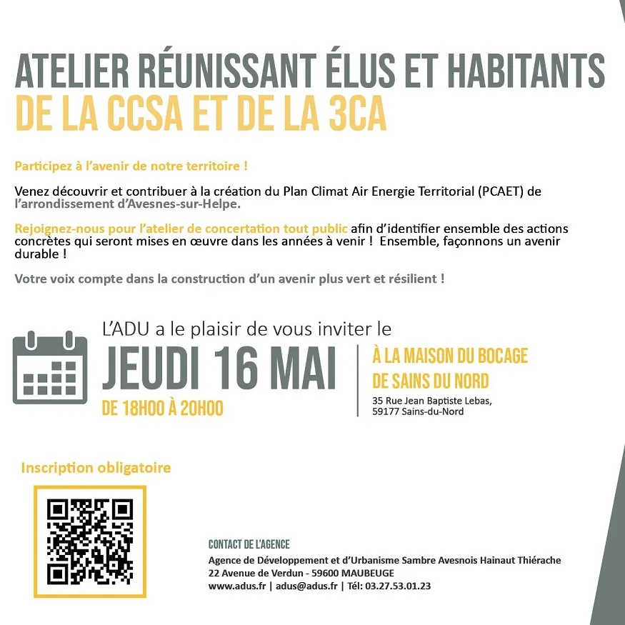 Les communautés de communes du sud-Avesnois et du Coeur de l'Avesnois nous donnent rendez-vous ce jeudi à 18h, à la maison du bocage de Sains du Nord, pour participer à l’un des ateliers de concertation autour du Plan « climat, air et énergie » de l'arrondissement d'Avesnes-sur-Helpe.