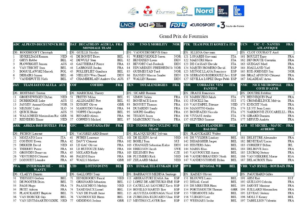 Si les sprinteurs seront moins nombreux cette année, on peut tout de même compter sur plusieurs gros « clients » à la victoire : Arvid de Kleijn, Max Walscheid, Søren Wærenskjold et Luca Mozzato ou bien encore Lawrence Pithie (Groupama-FDJ), révélation de la saison des classiques du printemps. Trois équipes viennent à Fourmies avec de grosses ambitions et l’objectif d’amasser un maximum de points UCI pour conserver l’an prochain leur licence World Tour : Cofidis, Intermarché-Wanty et Arkéa-B&B Hôtels !