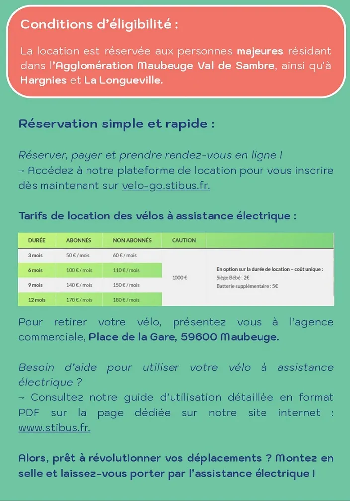 A ce jour, plus de 20 vélos ont déjà été réservés, selon Sambre Mobilités. On rappelle que la location de base, pour une durée de 3 mois, s’élève à 60 € ou 50 € pour les abonnés Stibus, avec un chèque de caution de 1000 € !