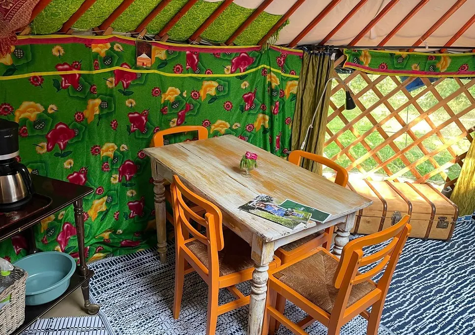 Comptez 75 € pour la location de la yourte pour 2 personnes (drap en option à 5 €). Sylvie Bonneau, la propriétaire du camping de Willies, propose également un service « table d'hôtes », sur réservation 48h à l'avance.